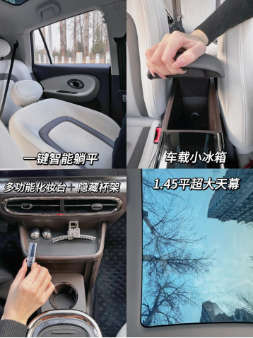 钇为3圆润饱满的外观,两颗LED水晶天使眼大灯,仿佛夜空中最亮的星,照亮你的春日之旅,小姐姐们都会为之心动哦!15.6英寸大屏幕,让旅途不再枯燥,无论是追剧还是导航,都能清晰呈现。1.45平米大天幕,尽享无边春色,让蓝天白云成为你的车顶。